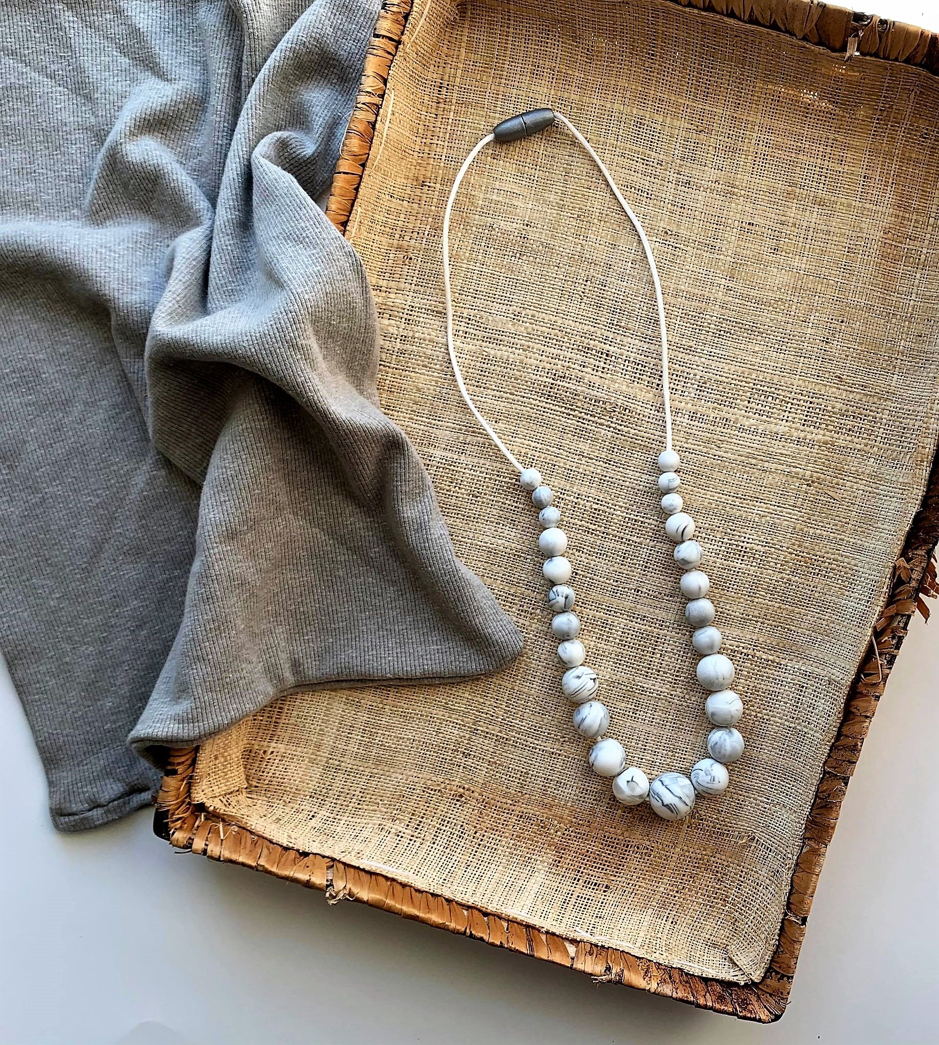 This silicone beaded necklace offers a perfect blend of fashion and function for all ages. Trendy and stylish, it serves as a teething-approved fidget toy that provides soothing comfort. Featuring a safe break-away clasp, it ensures peace of mind while keeping you looking effortlessly chic every day.